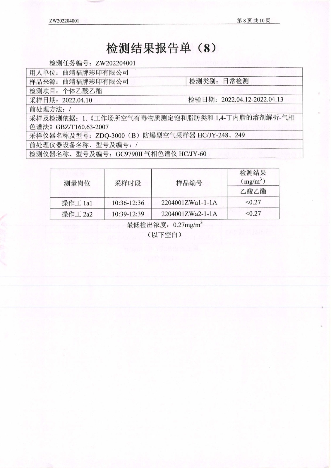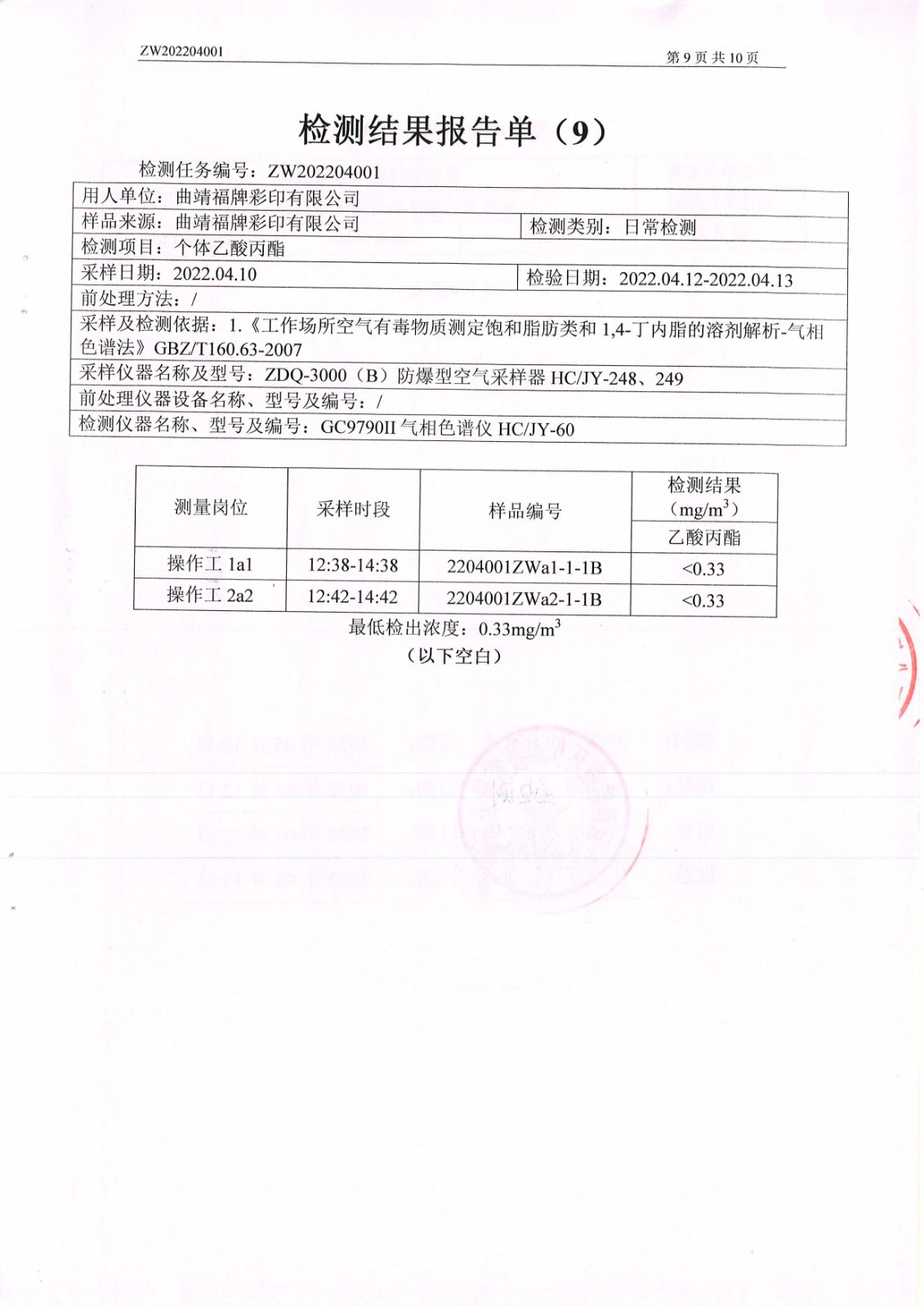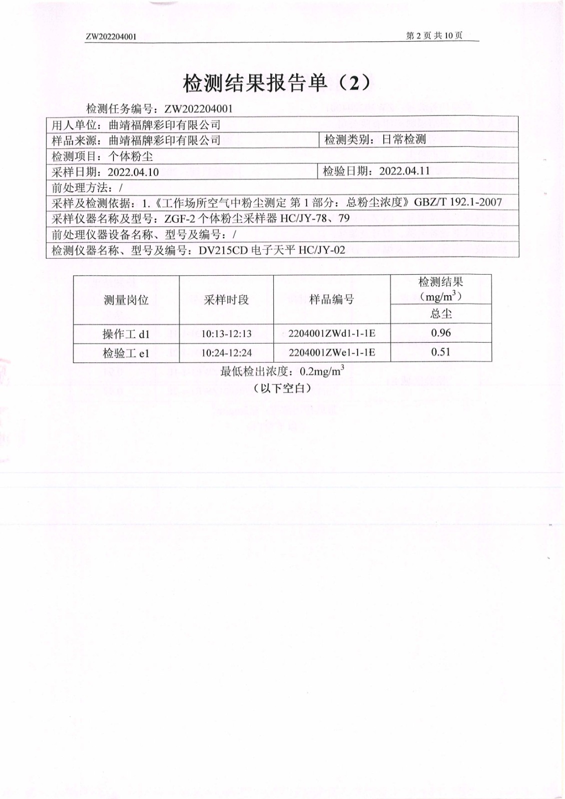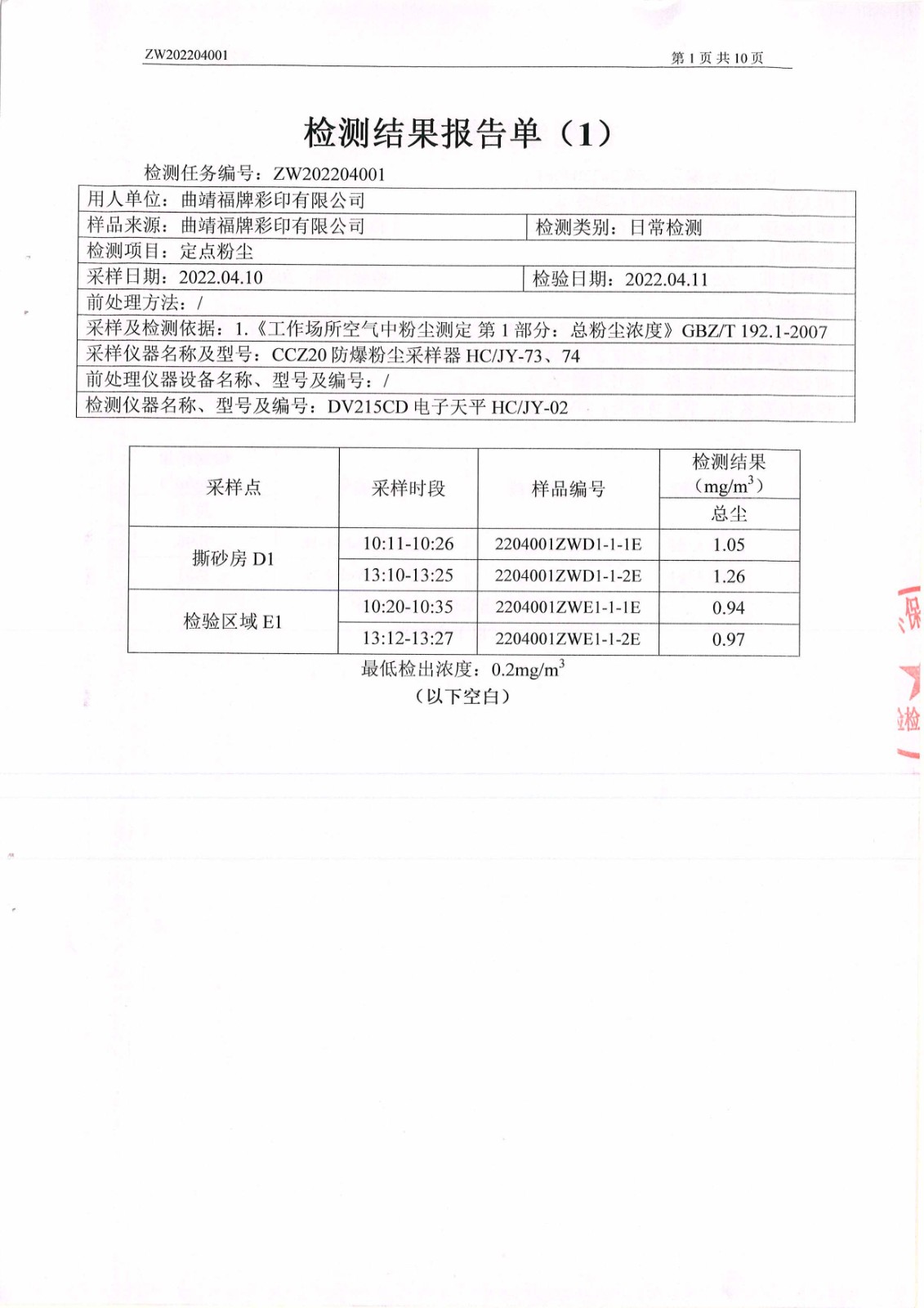 危害因素檢測報告