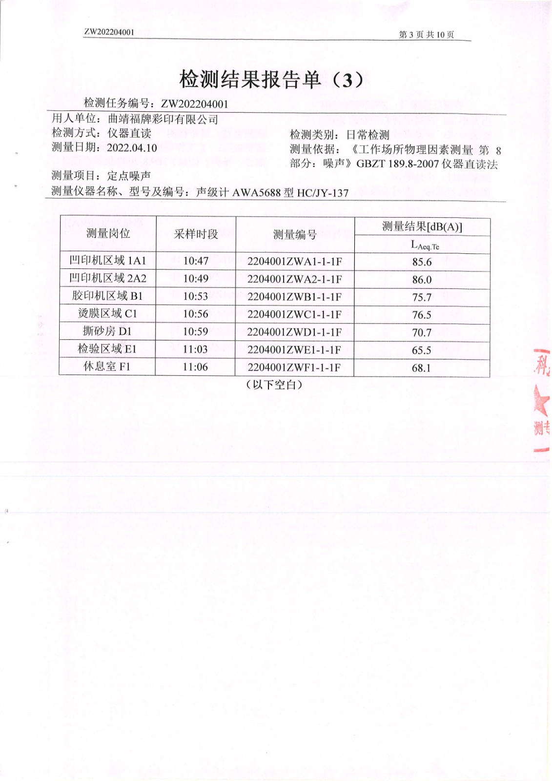 噪聲檢測報告